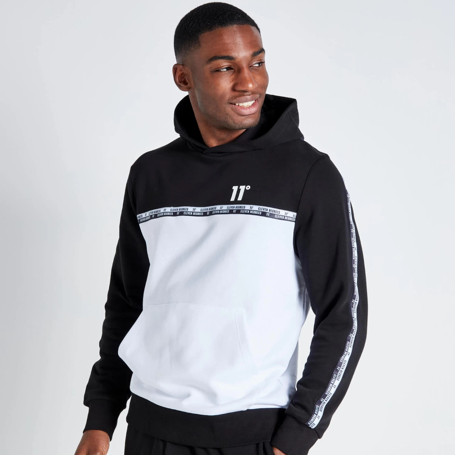 11 Degrees Double Taped Hoodie – Black / White